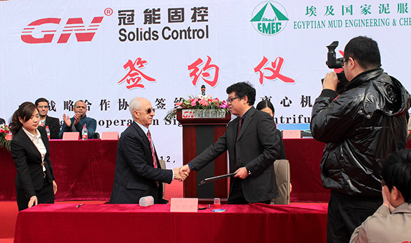 2015年3月12日,冠能固控埃及國家泥服公司在中國北京冠能公司總部簽署戰略合作協議,為此冠能固控舉辦了盛大了簽約儀式,儀式也包括了一大批離心機的成功交付。