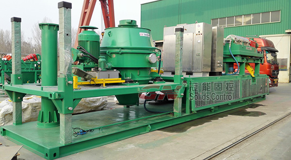 該項目主要包括6臺GNLW363BG-VFD型臥螺式沉降高速離心機和3臺GNCD930C-VFD型立式巖屑甩干器。新版的GNLW363BG-VFD型臥螺式沉降高速離心機專門針對廢漿密度大、固相含量高等特點,通過優化離心機轉鼓部分的結構,極大的加強了離心機的處理量并增強了排出固相的干燥度。