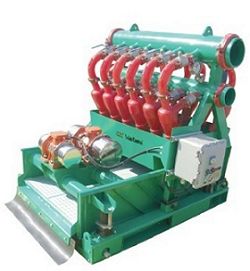 安裝與調(diào)試;以河北冠能石油機械制造有限公司的GNZJ752-12N鉆井液除泥清潔器為主。 安裝:司鉆組織鉆工完成。 將除泥器放到2#罐的除泥倉的罐面,除泥器的振動篩排砂口應(yīng)突出罐邊50-80mm。 連接所有法蘭,中間加上密封圈,用螺栓緊固。 電氣師連接并固定好砂泵和振動篩電機電源線,電氣系統(tǒng)均要防爆。 電纜盡量穿過防爆管,防止泥漿蒸汽腐蝕。 調(diào)試:電氣師 檢查除泥器電機接地完好。 啟動振動篩電機,調(diào)試電機轉(zhuǎn)向與其護罩上的箭頭方向一致,否則振動篩不能排砂。 使用:鉆井液工 啟動時先啟動小振動篩,再檢查閘門,然后啟動砂泵。 停止時先關(guān)閉砂泵,然后沖洗小振動篩,后停小振動篩。 操作:鉆井液工 調(diào)整旋流器底流螺母,使其底流呈傘狀噴射排出。 停用時,應(yīng)徹底放凈旋流器內(nèi)的泥漿防止凝固或結(jié)冰。將篩網(wǎng)沖洗干凈, 檢查各部位是否有異常。 嚴(yán)禁用鐵掀拍打篩網(wǎng),或用其它硬物刷刮篩面,以確保篩網(wǎng)的使用壽命。 更換篩網(wǎng)時,篩架上橡膠墊應(yīng)安裝齊全,篩網(wǎng)不許出現(xiàn)歪扭和松緊不均等 現(xiàn)象,保證篩網(wǎng)平整。 拆卸:與安裝順序相反。置于平坦地面待運。附件可置于罐內(nèi),綁扎好。 檢查和保養(yǎng):鉆井液工 檢查 查看壓力表壓力是否在工作壓力范圍內(nèi);壓力表如有損壞或指針不動應(yīng)及 時更換;壓力表進液口的濾網(wǎng)如有損壞或堵塞應(yīng)及時更換或清洗。 激振電機運轉(zhuǎn)累計100小時,為初運轉(zhuǎn)期,在初運轉(zhuǎn)期內(nèi),每班應(yīng)檢查連 接螺栓并進行緊固。 應(yīng)經(jīng)常檢查兩邊激振器外殼溫度。激振電機運轉(zhuǎn)累計5000小時,應(yīng)對軸承進行檢查,若已損傷或軸承壽命 到期,應(yīng)更換軸承并加滿潤滑脂。如果發(fā)現(xiàn)兩端的激振力不一致時可拆開兩端,把兩端的激振塊調(diào)為一致。 保養(yǎng):機械師指導(dǎo)鉆井液工完成。 一般在運轉(zhuǎn)500小時左右應(yīng)補充潤滑脂,若發(fā)現(xiàn)潤滑脂變質(zhì)時,應(yīng)及時更換。